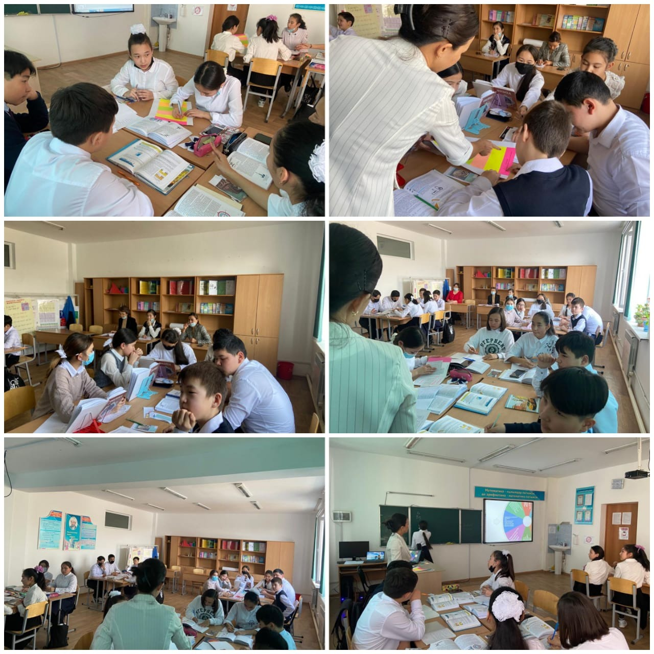 6 «Ә» сыныбында  24.02.2022ж   күні  математика   пәнінен   А.Жұбанышева     «Бір айнымалысы бар сызықтық теңсіздіктер  жүйесін шешу» тақырыбында,   ашық сабақ өткізді.  Сабақ  қазіргі заман   талабына сай интерактивті тақтаны  қолданумен өткізілді. Сабақ барысында СТО технологиялары, тренинг, сергіту сәті тиімді қолдана білді. Мұғалім сабақты  қорытындылауда   саралаудың   «Қорытынды» тәсілін қолданды. Оқушылар   сабақта  қызығушылық  танытып,   тапсырмаларды  жақсы  орындап, өз   білімдерін  көрсетті. Сабаққа қатысқан ұстаздар сабақтың құрылымы жағынан өте жақсы өткені және осы сабақтан көп әдістеме мен өздеріне керекті ақпараттар алғандарын айтты.
